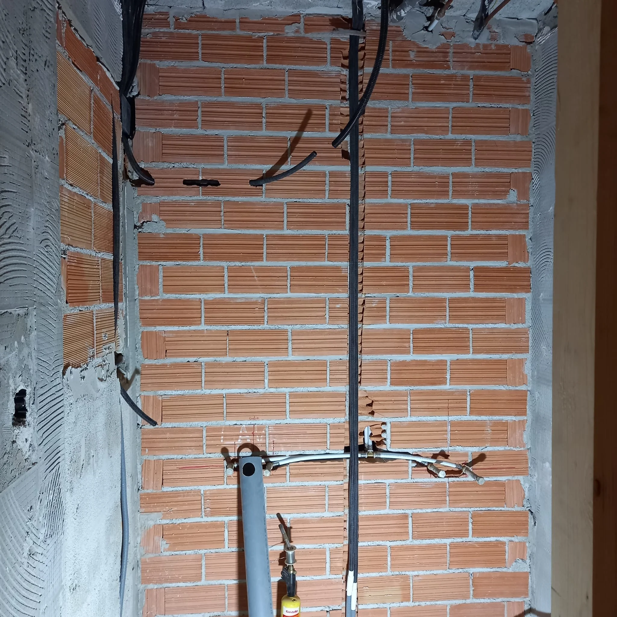 Llega una fase en las obras en la que se trabaja adentro. Hay que pasar cables y tubos mil. Es un trabajo que no se ve. El cliente sólo ve su casa llena de agujeros, rozas y tubos colgando.